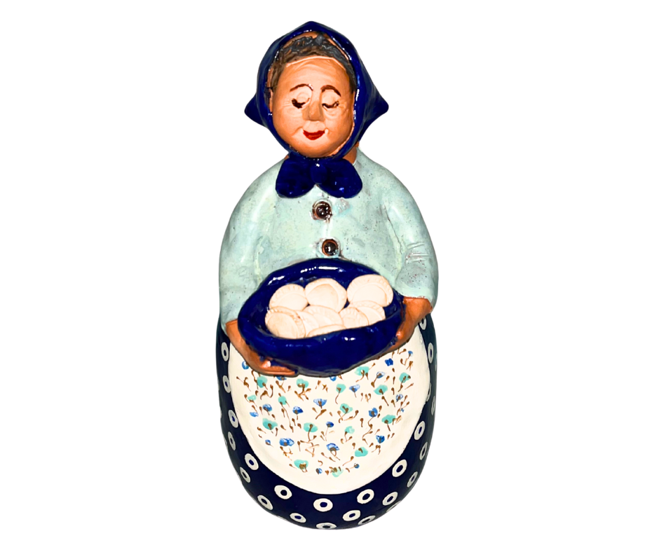 This Babcia holds a book, representing treasured family recipes, stories, prayers, and the lessons passed down from one generation to the next. Her floral apron and tied headscarf reflect beloved Polish village style, making her an instantly recognizable and heartwarming collectible.
